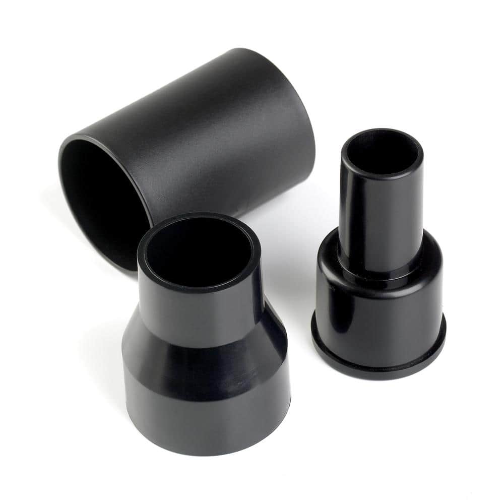 A tidy workshop starts with tools that connect effortlessly. This sleek, all-black adapter trio streamlines transitions between hose sizes, keeping your vacuum attachments cleanly integrated and close at hand. Use the hose-to-hose connector to extend your reach across large benches or garages while maintaining an uncluttered silhouette. It’s a minimalist essential that elevates everyday cleanup into a refined routine.