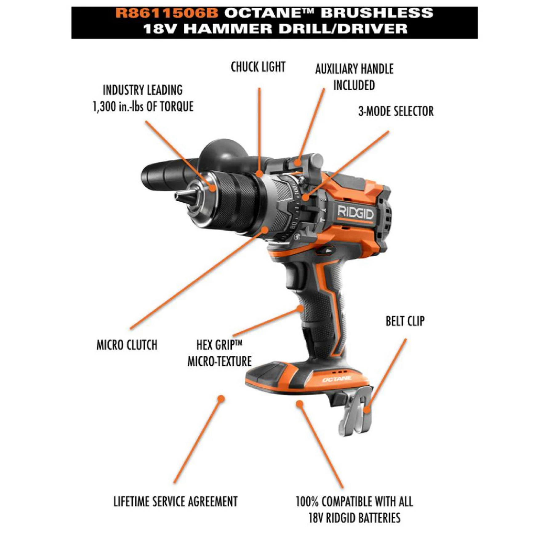 Upgrade your toolkit with RIDGID’s 18V OCTANE hammer drill/driver for faster, more precise results on every project.