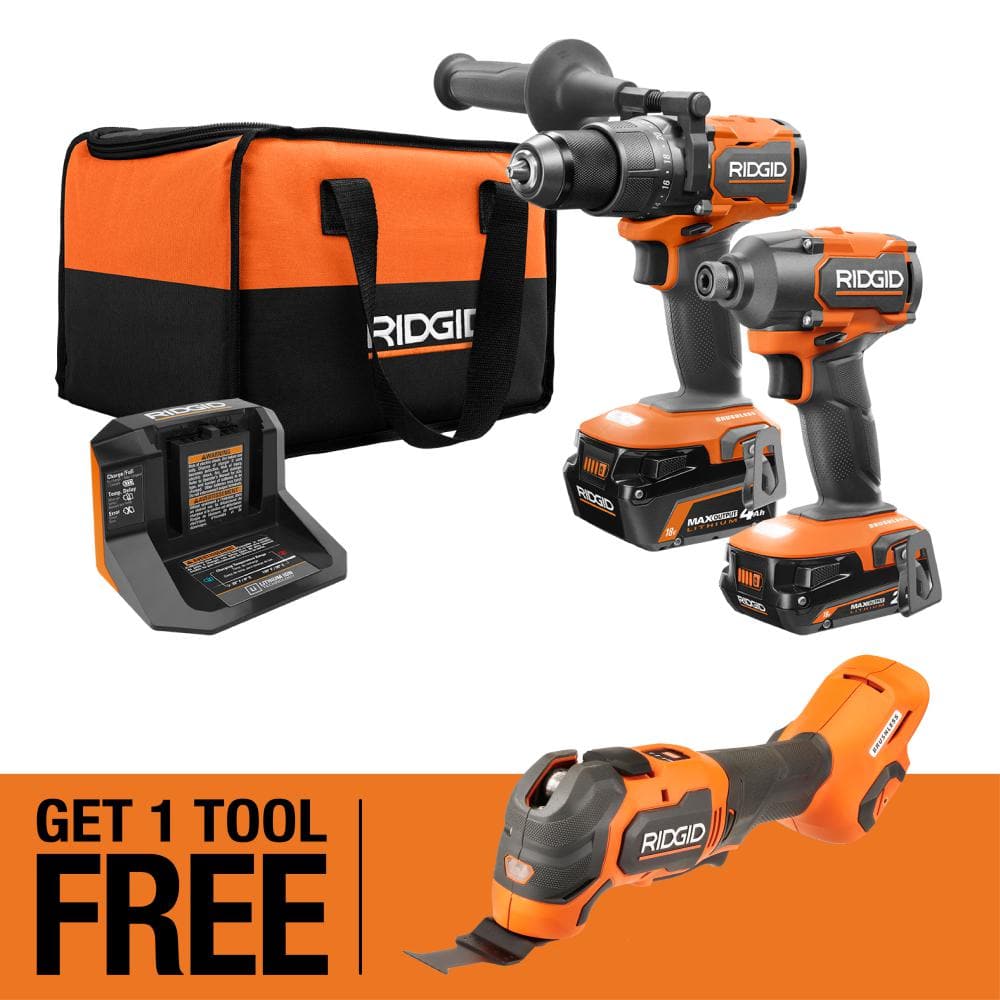 RIDGID 18V Brushless Cordless 2-Tool Combo Kit w/ (2) Batteries, Charger, Bag, & FREE 18V Brushless Multi Tool