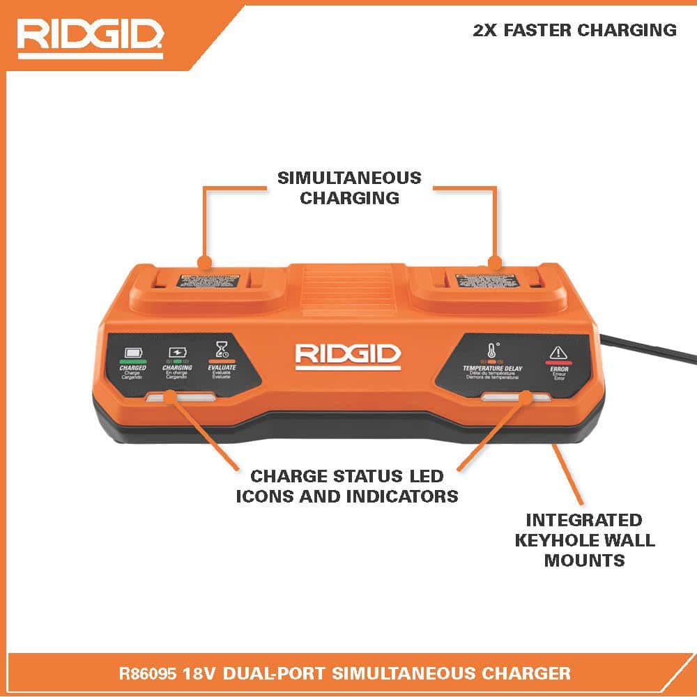 RIDGID 18V Dual Port Simultaneous Charger Kit