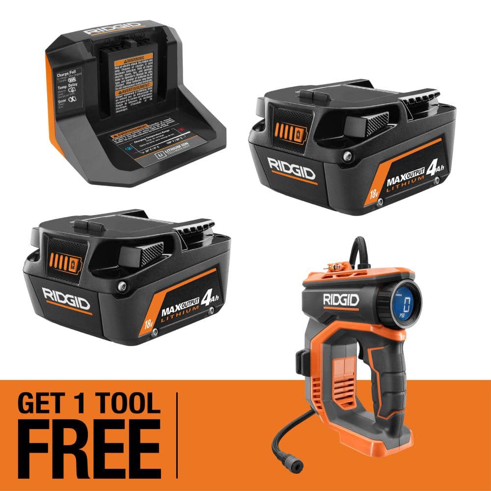 RIDGID 18V MAX Output Starter Kit with (2) 4.0 Ah MAX Output Batteries and Charger with FREE 18V Digital Inflator