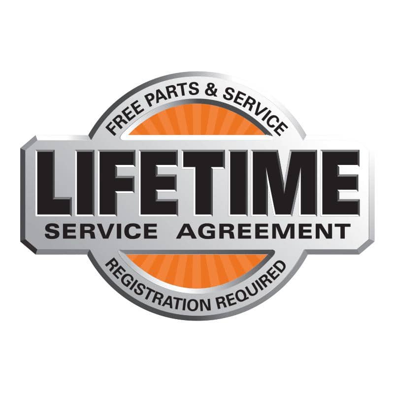 • Lifetime Service Agreement: Register within 90 days for free parts and service for life.