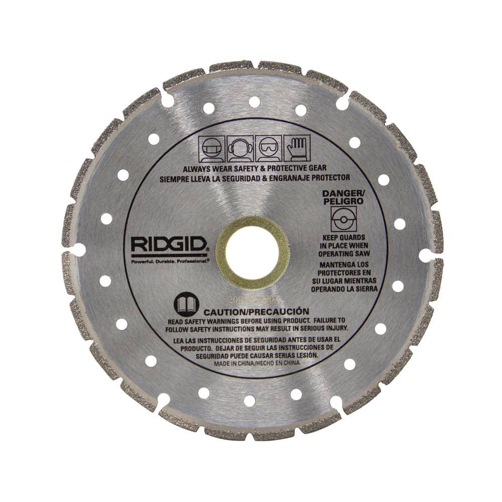 This RIDGID 4.5 in. segmented rim diamond blade delivers fast, clean cuts in hard, dense metals. Designed for angle grinders, it maintains size and cutting depth longer than abrasive wheels for lower cost per cut.