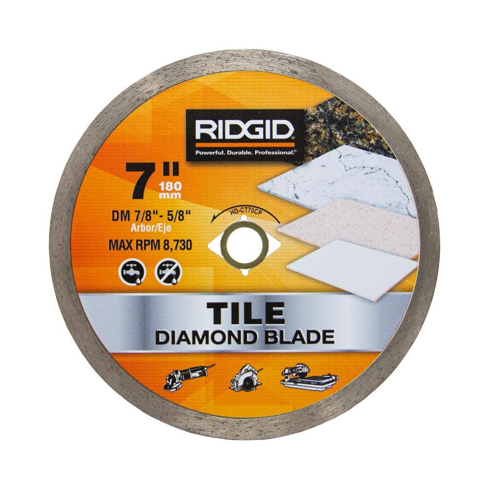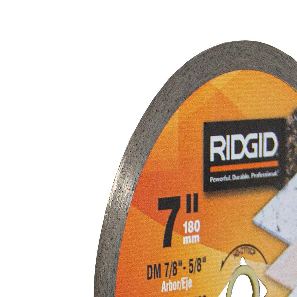 RIDGID 7 in. Continuous Rim Diamond Tile Blade, DM 7/8 in.–5/8 in. Arbor, Max 8,730 RPM