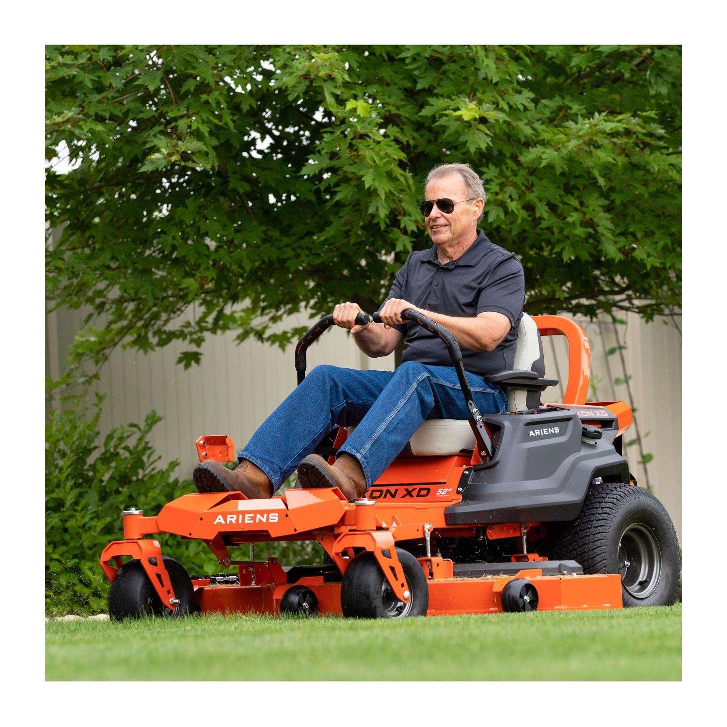 The Ariens IKON XD 52-in is packed with high end residential quality and offers superior power and performance. From a 23 HP Kawasaki FR V-Twin engine to a 11-gauge steel fabricated deck, this is a tougher, longer-lasting zero-turn mower built to perform. It's constructed with a heavy-duty fully welded steel tubular frame for years of durability and performance and is equipped with three blades covering a 52-in cutting width. Greater comfort is achieved with the high back plush seat, including standard armrests and ergonomic intuitive controls. Ariens puts a high priority on building low-maintenance machines incorporating our self-adjusting deck drive belt technology. We assess, scrutinize, improve, and test every last pin, bolt, and belt. From smarter, sustainable components, to durable, virtually indestructible designs, we’re known for consistently delivering an effortless ownership experience and standing the test of time.