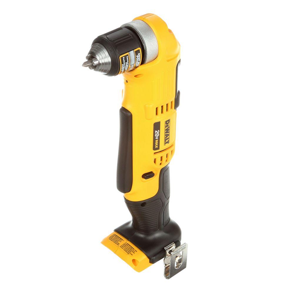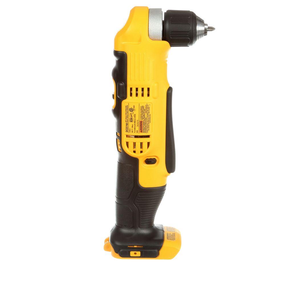 The DEWALT 20-Volt Max Lithium-Ion 3/8 in. Cordless Right Angle Drill (Tool-Only) includes a deep hex chuck so you can recess the bit further back into the head of the tool, shortening the overall front to back length of the drill with a bit inserted. Featuring dual speed ranges of 0 RPM to 650 RPM and 0 RPM to 2000 RPM for increased user flexibility, this drill is ideal for tackling a wide range of applications. Easy to use and control with a multi-grip trigger for comfort and convenience, you can easily work in tighter spaces while still having access to the trigger. Durably made, sturdy and a good size and weight, use with confidence for DIY projects or on the jobsite.