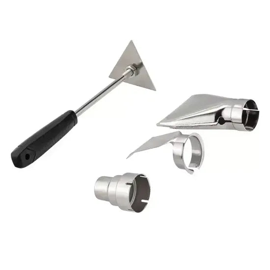 A: The Ronix 1104V comes with three nozzles: a concentrator nozzle for localized heat, a reflector nozzle for pipe bending or shrinking, and a wide nozzle for paint stripping.