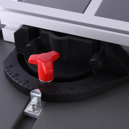 A: The table saw comes with advanced safety mechanisms including a guard system and emergency shut-off to ensure user safety.