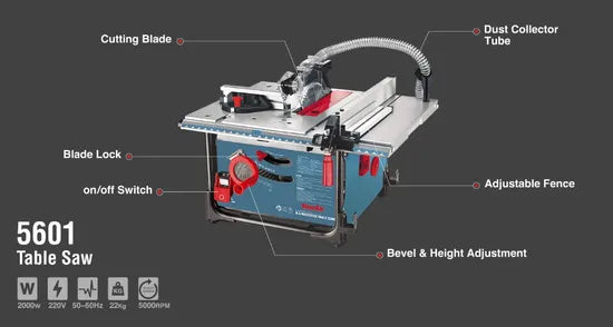 The Ronix 5601 Woodworking Table Saw is engineered for precision and efficiency, featuring a powerful 2000W motor and an innovative dust collection system. Ideal for both professionals and serious DIYers, this saw marries top-of-the-line functionality with a commitment to a clean workspace, making your woodcutting projects smoother and cleaner.