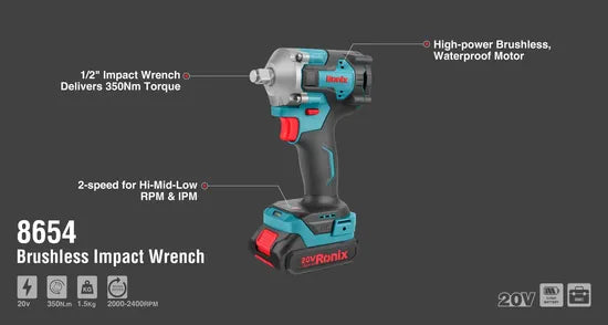 Ronix 8654 Best Price Brushless Impact Wrench 20V