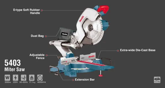 Upgrade your workshop today with the Ronix 2000W Sliding Miter Saw, where precision meets power for superior results.