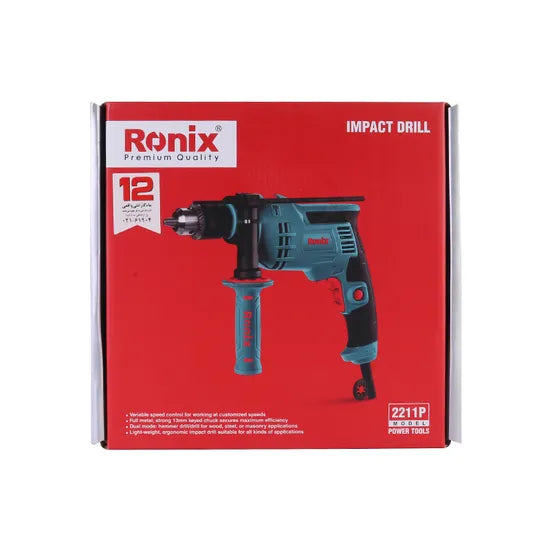 The Ronix 2211p High Performance Electric Impact Drill is engineered for professionals requiring power and precision in their toolset. Ideal for drilling into steel, concrete, and wood, this impact drill offers versatile applications in building and industrial settings. Featuring a durable ball-type structure and a 13mm key chuck, it's built to tackle demanding jobs effortlessly.