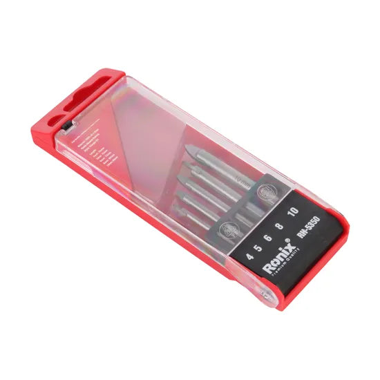 The Ronix RH-5350 Drill Bit Set is an essential toolkit for anyone working with both delicate and hard materials. This 5-piece set, crafted from YG6X and 45# steel, is perfect for clean, precision drilling in a variety of materials including glass, tile, and wood. Designed for durability, it features a carbide tip for smooth drilling, ensuring a long lifespan and superior performance.