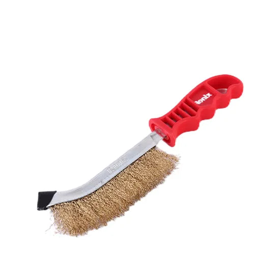 The Ronix RH-9948 Scratch Handle Brush is your go-to tool for removing rust and debris from surfaces. Crafted with high-strength brass-coated carbon-steel wire, this brush is designed to withstand the toughest cleaning tasks effortlessly. Its long, curved handle ensures easy maneuverability, making industrial-grade cleaning accessible to both professionals and DIY enthusiasts.