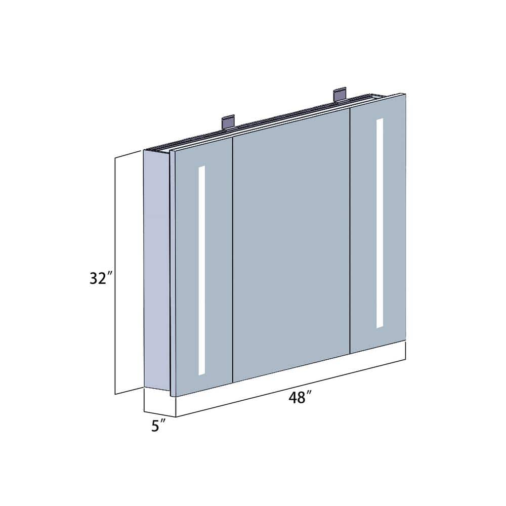 ROSWELL Rieti 48 in. W x 32 in. L Rectangular Surface-Mount LED Glass Surface Mount Medicine Cabinet with Mirror in Silver