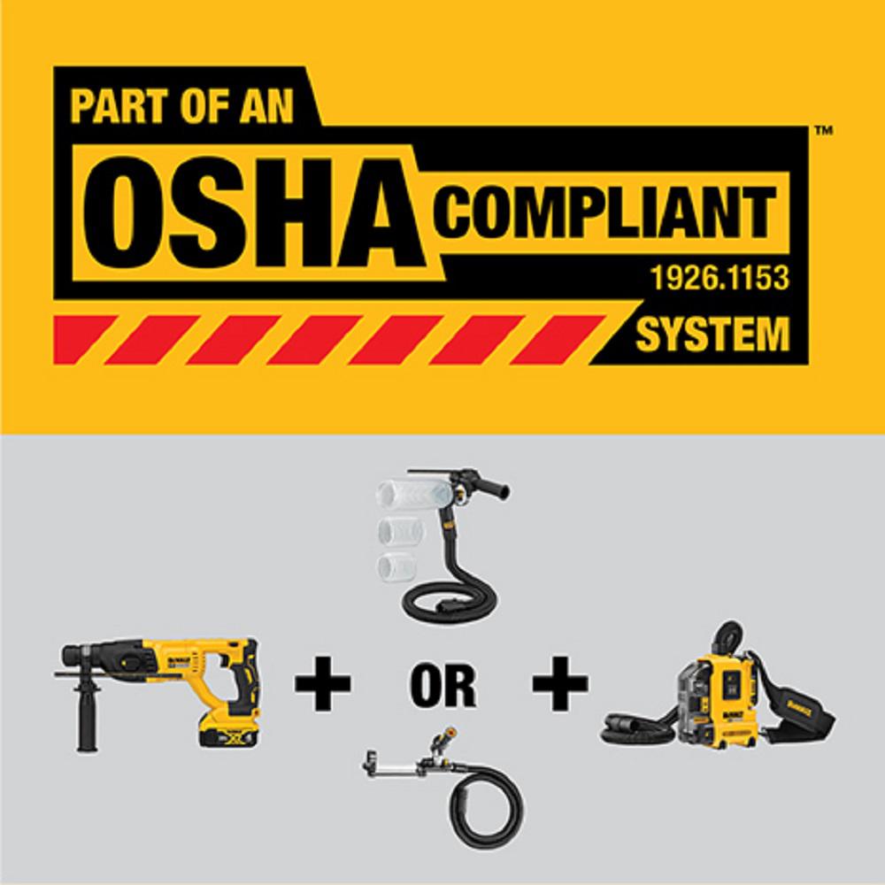 The DCH133B 20-Volt MAX XR Brushless 1 in. D-Handle Rotary Hammer is a compact light weight high-performance rotary hammer that has a durable German engineered mechanism that delivers 2.6 joules of impact energy. At the heart of this tool is the DEWALT brushless motor and durable rotary hammer mechanism. With its better than corded speed of application, compact size, light weight and balanced design, this hammer can replace your corded tool. The mechanical clutch enhances user control in a bind up situation and can help minimize sudden torque reaction. The DCH133 is dust extraction ready for the D25301D.