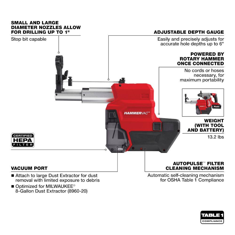 Dust Management M18 HAMMERVAC dedicated extractor; OSHA Table 1 compliance; certified HEPA filter