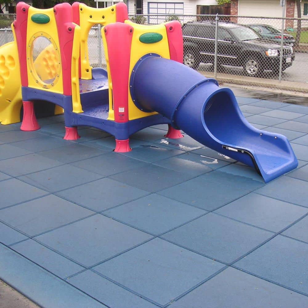 • Safety Cushioning: 2.5 in thick rubber tile with waffle underside for impact absorption