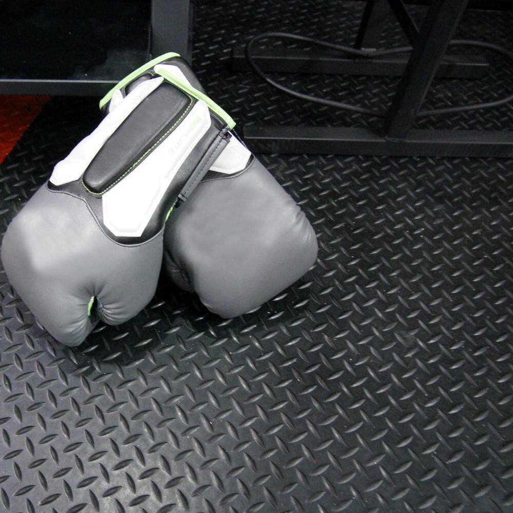 Durable Diamond Plate rubber flooring protects surfaces and adds non-slip traction for gyms, garages, and utility spaces. Made from synthetic rubber, this 3 mm mat absorbs shock, resists moisture, and installs easily with tape, adhesive, or loose lay. Sized at 4 ft. x 2.5 ft. for 10 sq. ft. of coverage.