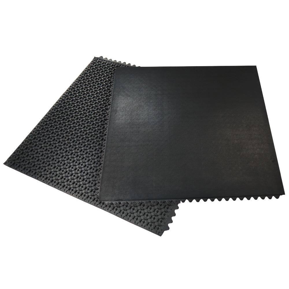 Durable, eco-friendly interlocking rubber tiles designed to create a seamless gym or basement floor. Each 36 in. x 36 in. tile is 12 mm (approx. 5/8 in.) thick for superior shock absorption, traction, and anti-fatigue comfort without adhesives.