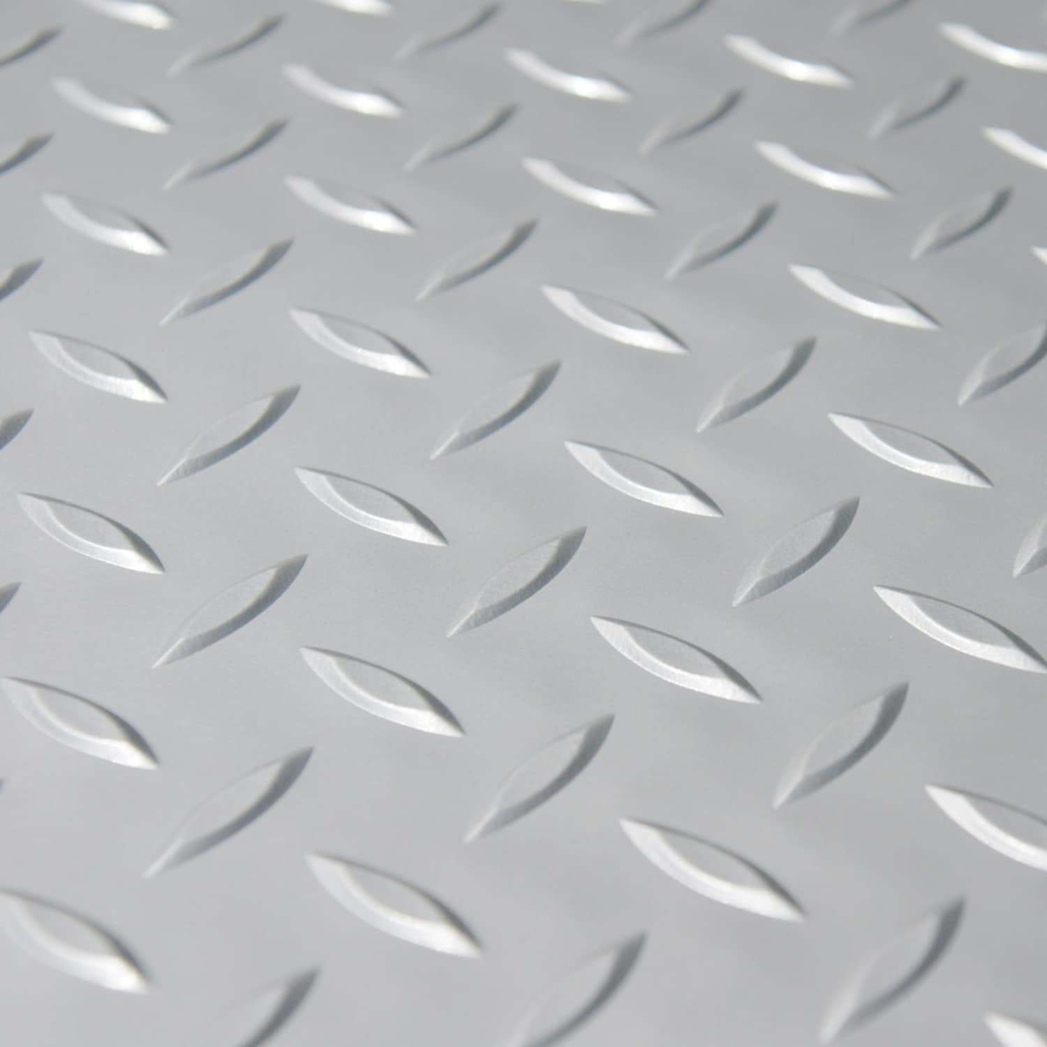 This Diamond-Plate flooring roll transforms an ordinary room into a sleek, industrial haven. Its metallic finish reflects light beautifully, adding depth and dimension to any space. Consider using it in a loft or modern garage for a sophisticated, utilitarian vibe. With its anti-slip texture and tactile surface, this floor is not only functional but also a striking design element. It's essential for creating an enviable space that marries style with practicality.
