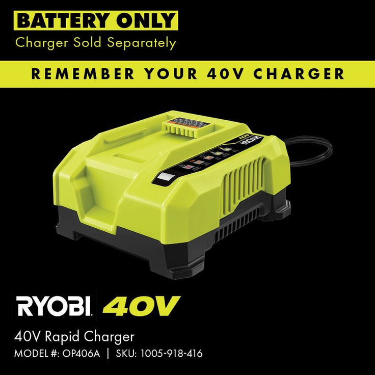 • Charges in 30 minutes or less with the RYOBI 40V Rapid Charger (Model # OP406A, Internet SKU 312564301)