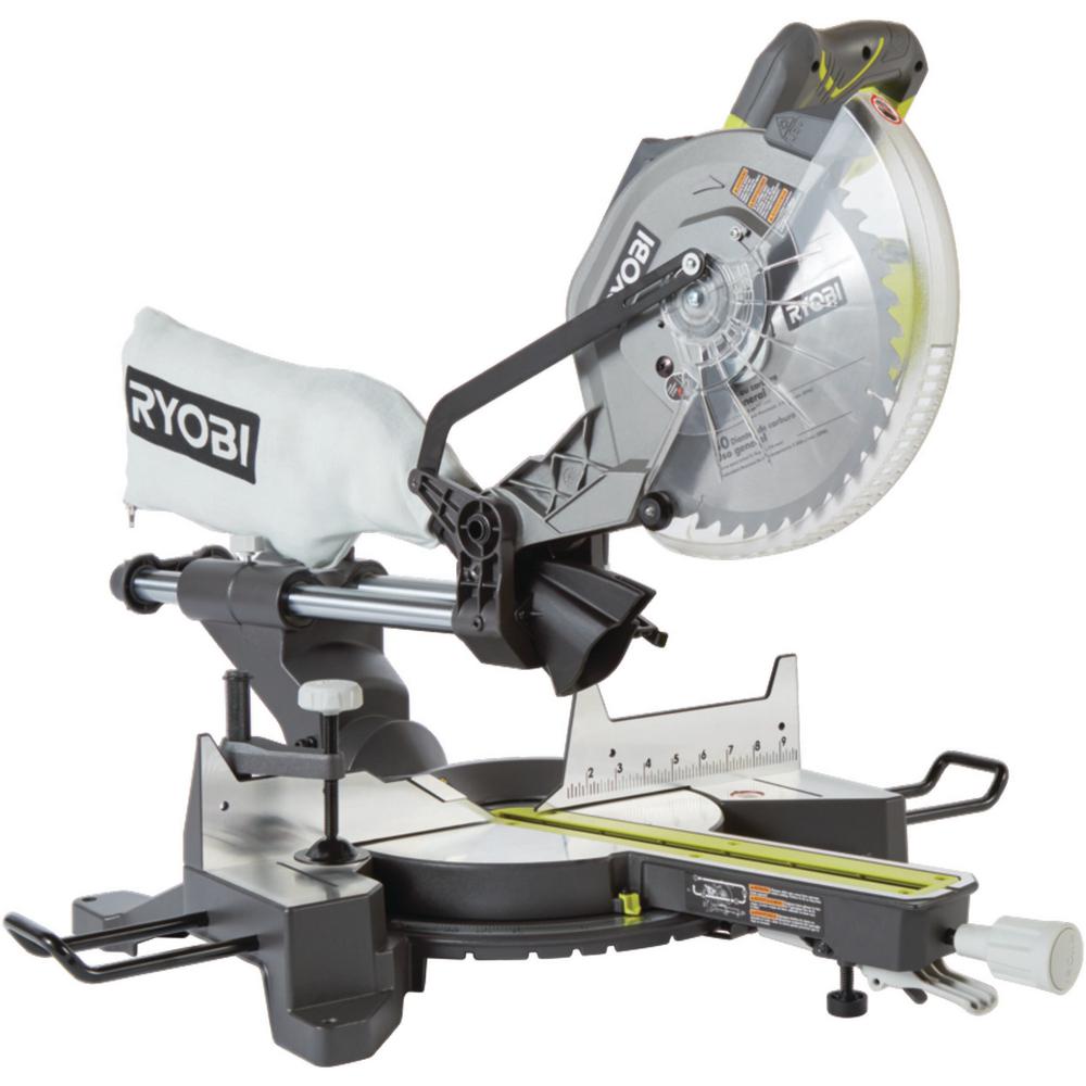 RYOBI introduces the 15 Amp 10 in. Sliding Compound Miter Saw and 18-Volt Cordless Airstrike ONE+ Brad Nailer. This saw features a 15 Amp, 4,600 RPM motor and has a 12 in. cross cut capacity. The LED Cutline Indicator and work-light illuminates material to help improve accuracy of the cut and visibility. The extended miter range from 47° left and right provides versatility for all DIY and professional projects by accommodating a wide variety of cuts. This 18-gauge brad nailer features AirStrike Technology, which eliminates the need for noisy compressors, bulky hoses, or expensive gas cartridges. This means faster setup and easier maneuvering on the job site. The RYOBI P320 AirStrike Brad Nailer drives 18-Gauge nails from 5/8 in. to 2 in. long. Backed by the RYOBI 3-Year Manufacturer's Warranty, this kit includes the 15 Amp 10 in. Sliding Compound Miter Saw with LED Cutline Indicator, a 40-tooth carbide-tipped blade, table extensions, a work clamp, a blade wrench, a dust bag, the 18-Volt ONE+ Lithium-Ion Cordless AirStrike 18-Gauge Brad Nailer, a belt clip, sample nails, and an operator's manual. Battery and charger sold separately.