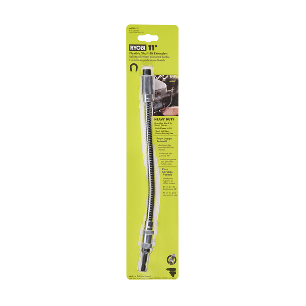 Reach tight, hard-to-access fasteners with the RYOBI 11 in. Flexible Shaft Bit Holder. The heavy-duty flexible shaft bends to navigate around obstacles while securely holding driver bits for power drill use.