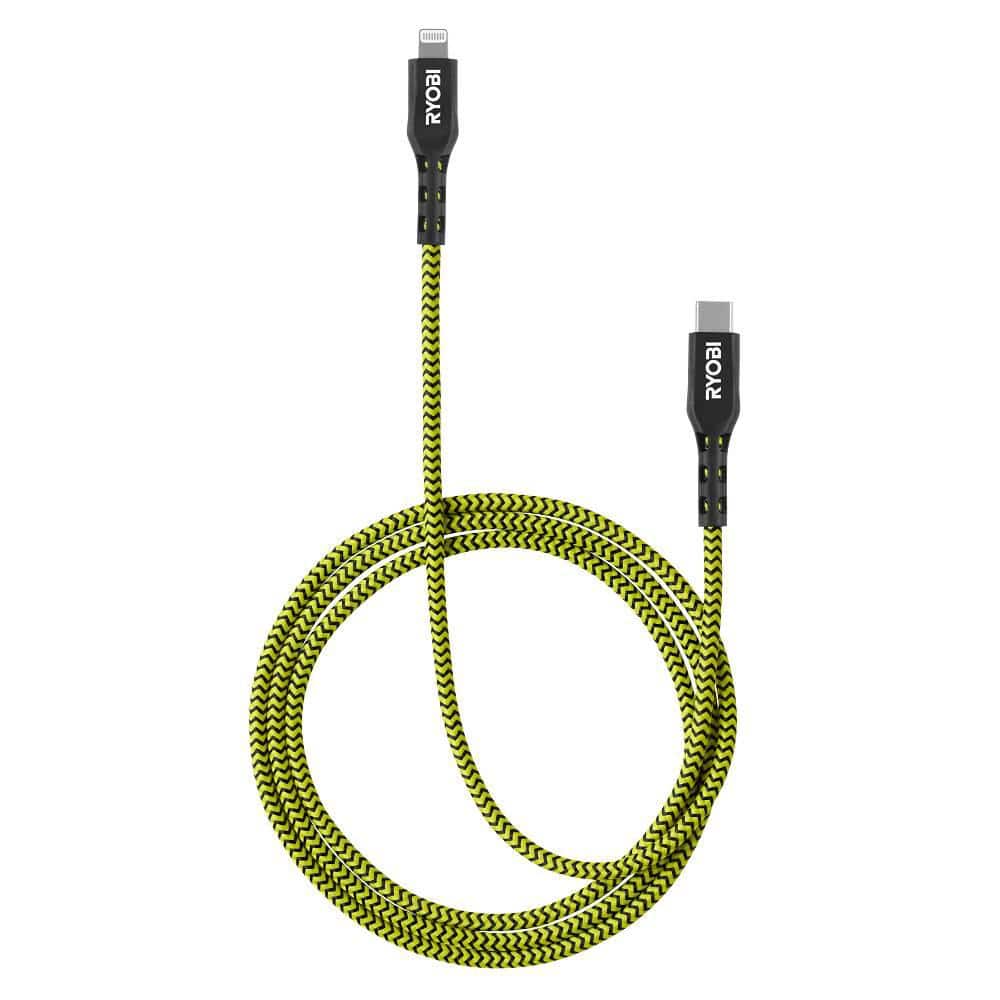 Stay powered up with the reliable and durable RYOBI USB-C to Lightning Nylon Cable—enhance your toolkit today!
