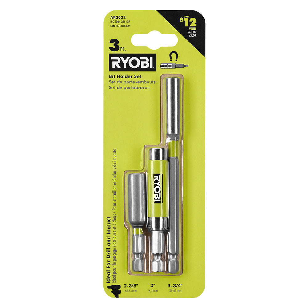 This RYOBI 3-piece impact-rated bit holder set extends reach and improves fastener access for drills and impact drivers. Includes three lengths for versatility and quick changes, built to handle high-torque applications.