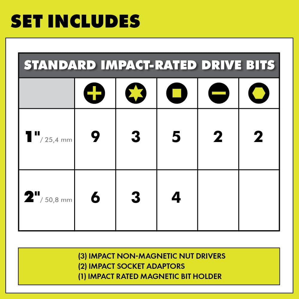 • Comprehensive Set: Includes 34 driving bits, nut drivers, socket adaptors, and a magnetic bit holder.
