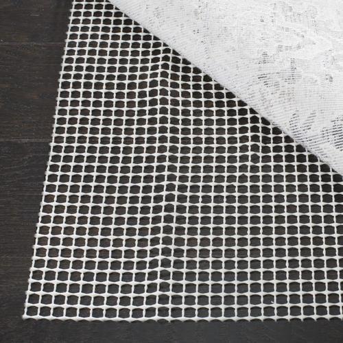 Grid Pad is made from polyester fabric coated with a high grade vinyl compound allows maximum air circulation through an open weave construction making vacuuming easy It helps keep tapestries and rugs safe from accidental slipping It can be easily cleaned by hand-washing in a mild detergent, rinsed, and laid flat to dry Construction: 21% Polyester - 79% PVC Rug Pad Measurements: 5-ft x 8-ft Rug pad can be trimmed to fit any rug size Made in USA 30 Day Limited Warranty