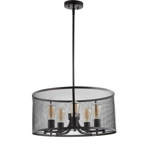 Dimensions: 20-in x 20-in x 13.5-43.5-in Includes 5 Bulbs Type of Bulb Included: LED ST58 4W Brightness: 420 Lumens Shade Material: 100% Metal Item Weight: 7 lbs Body Material: Iron Canopy Dimensions: 4.8-in x 4.8-in x 1-in 30 Day Limited Warranty
