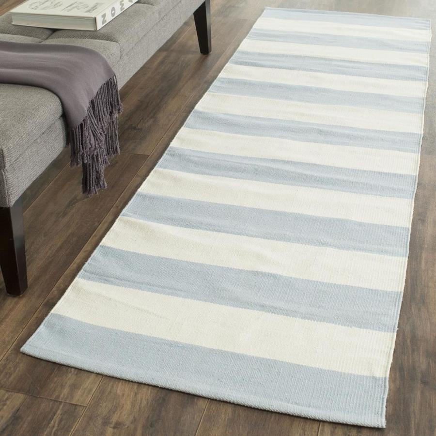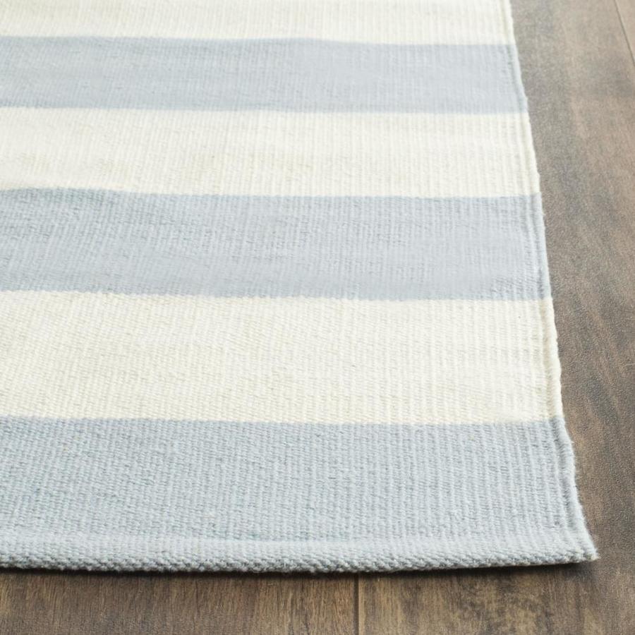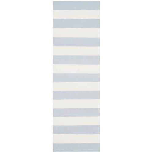 Safavieh Montauk Maslin 2 x 12 Sky Blue/Ivory Indoor Stripe Coastal Handcrafted Runner
