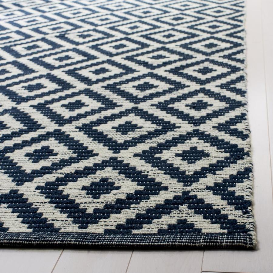 Safavieh Montauk Kare 2 x 7 Navy/Ivory Indoor Geometric Coastal Handcrafted Runner