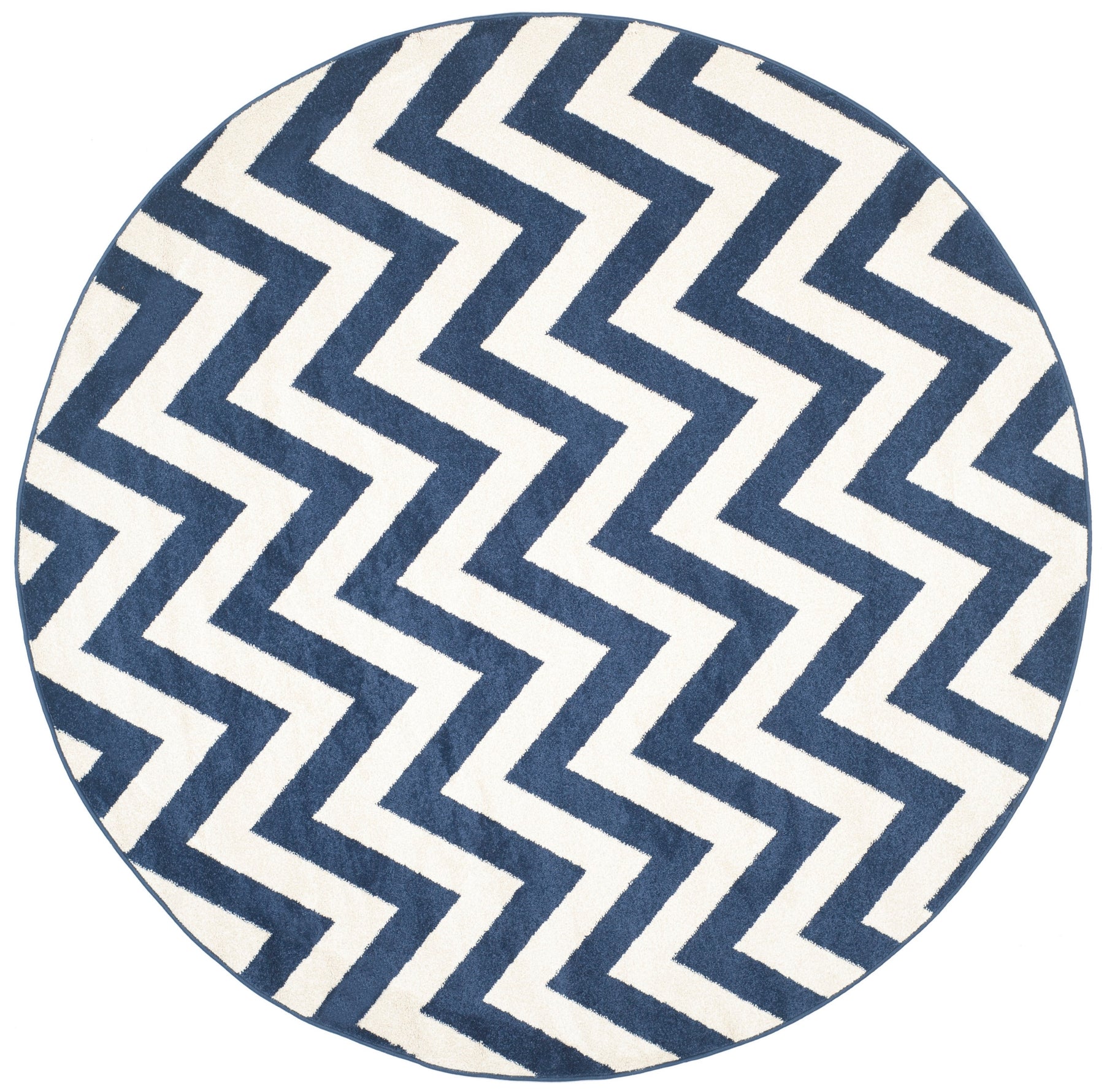 Safavieh Amherst Bellport 7-ft Round Navy/Beige Indoor/Outdoor Chevron Area Rug