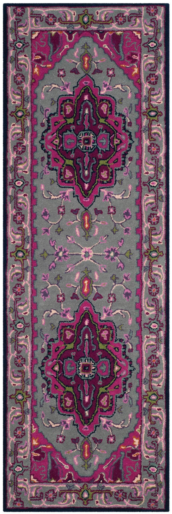 Hand-tufted from 100% wool, the Safavieh Bellagio Elche runner brings plush comfort and timeless Oriental style to hallways and entryways. Its gray and pink floral/botanical motif and medium 0.43-in pile offer a warm, durable surface ideal for indoor spaces.