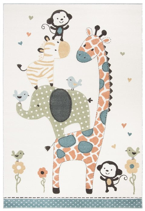 Playful and durable, this Safavieh Carousel Kids rug features a whimsical animal motif on an ivory ground, perfect for brightening nurseries and playrooms. Power-loomed from polypropylene with a latex backing, it offers a soft 5/8-inch pile that stands up to everyday family life.