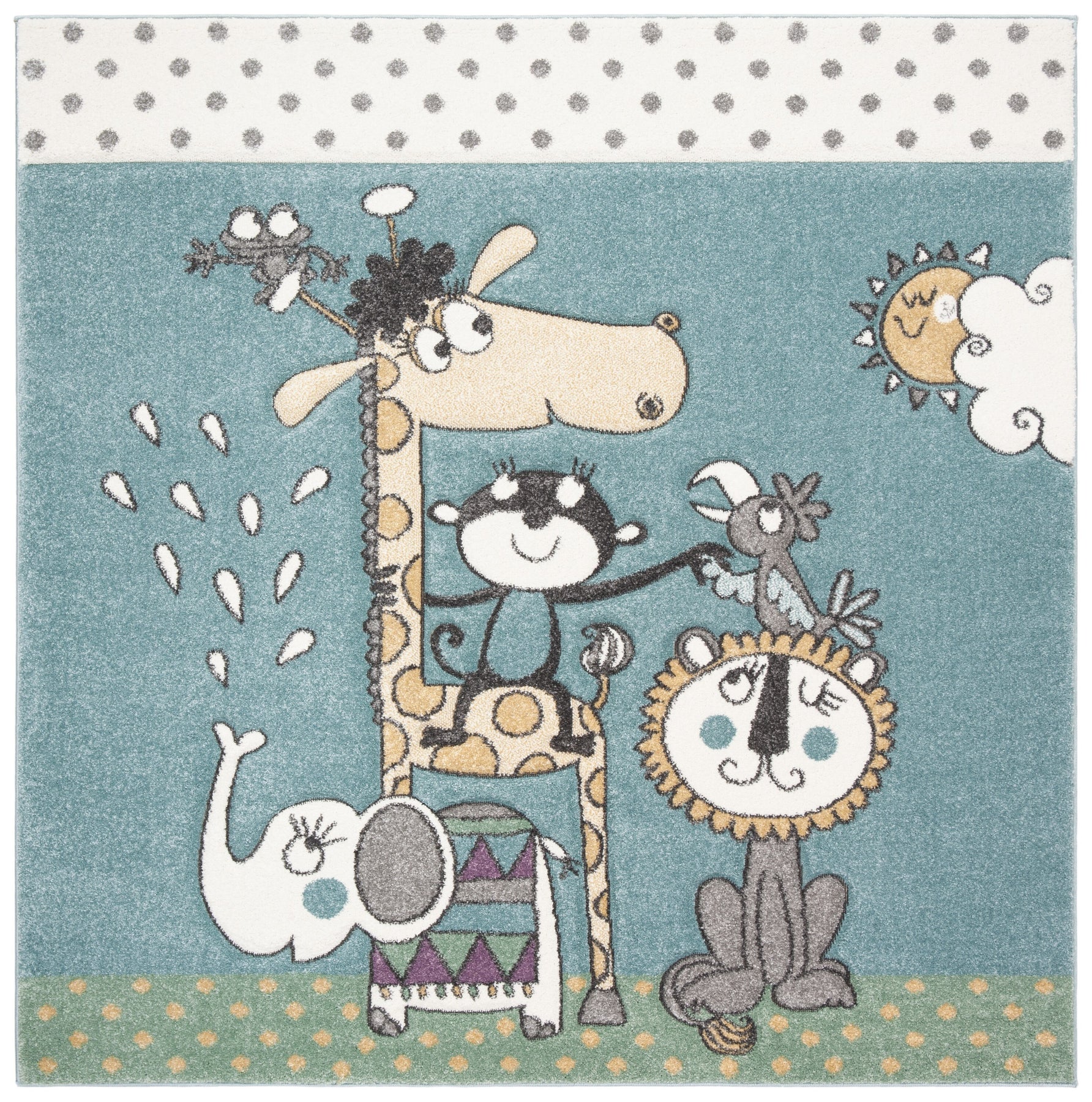 Safavieh Carousel Kids Giraffe 5 x 5 Ivory/Blue Square Indoor Kids Area Rug