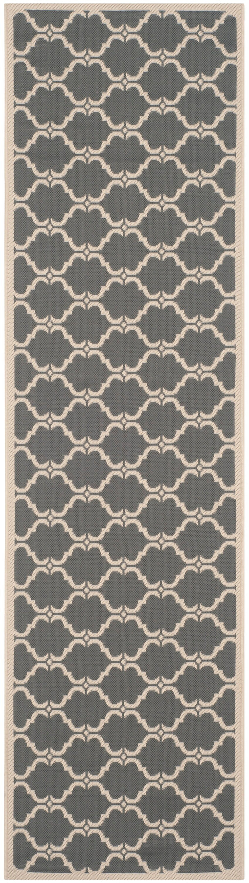 Safavieh Courtyard Aldo 2 x 12 Anthracite/Beige Indoor/Outdoor Trellis Coastal Runner