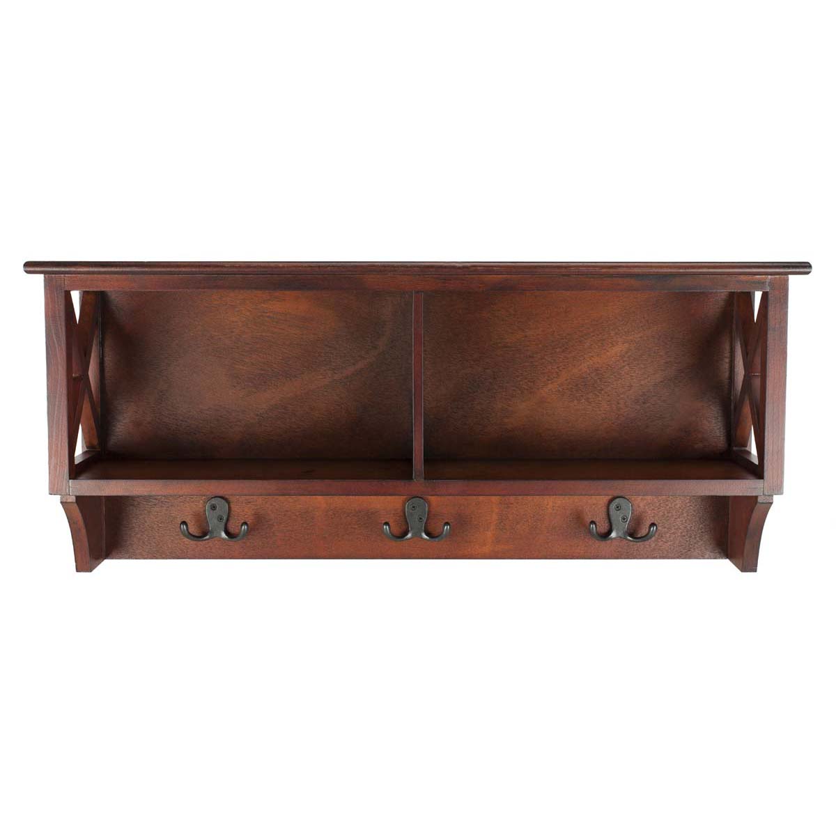 A classic wall-mounted rack that keeps entryways tidy, the Safavieh Freya features a warm cherry finish, two open cubbies, and three double hooks. Crafted from wood, it offers quick grab-and-go storage for coats, bags, and everyday essentials without assembly.