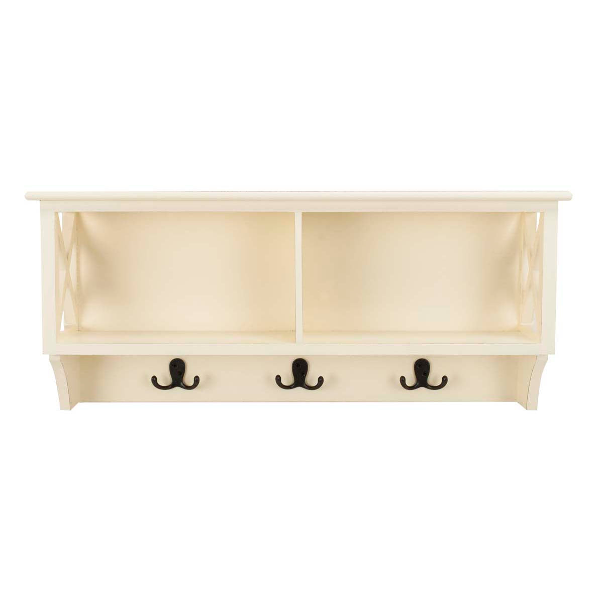 This traditional wall-mounted storage rack by Safavieh keeps entryways tidy with two open cubbies and three double hooks. Finished in white wood with decorative side X-details, it’s perfect for mudrooms, kitchens, or hallways.