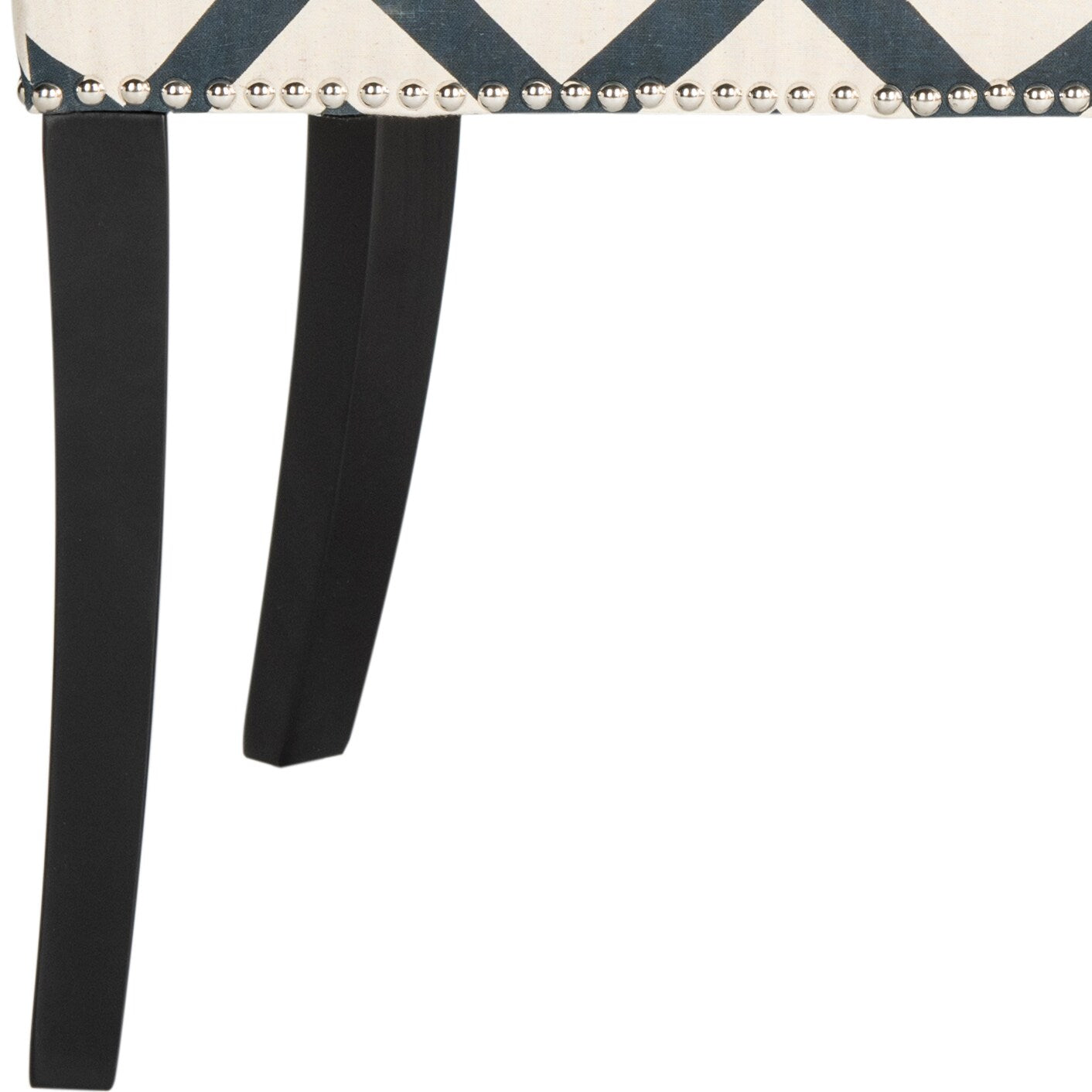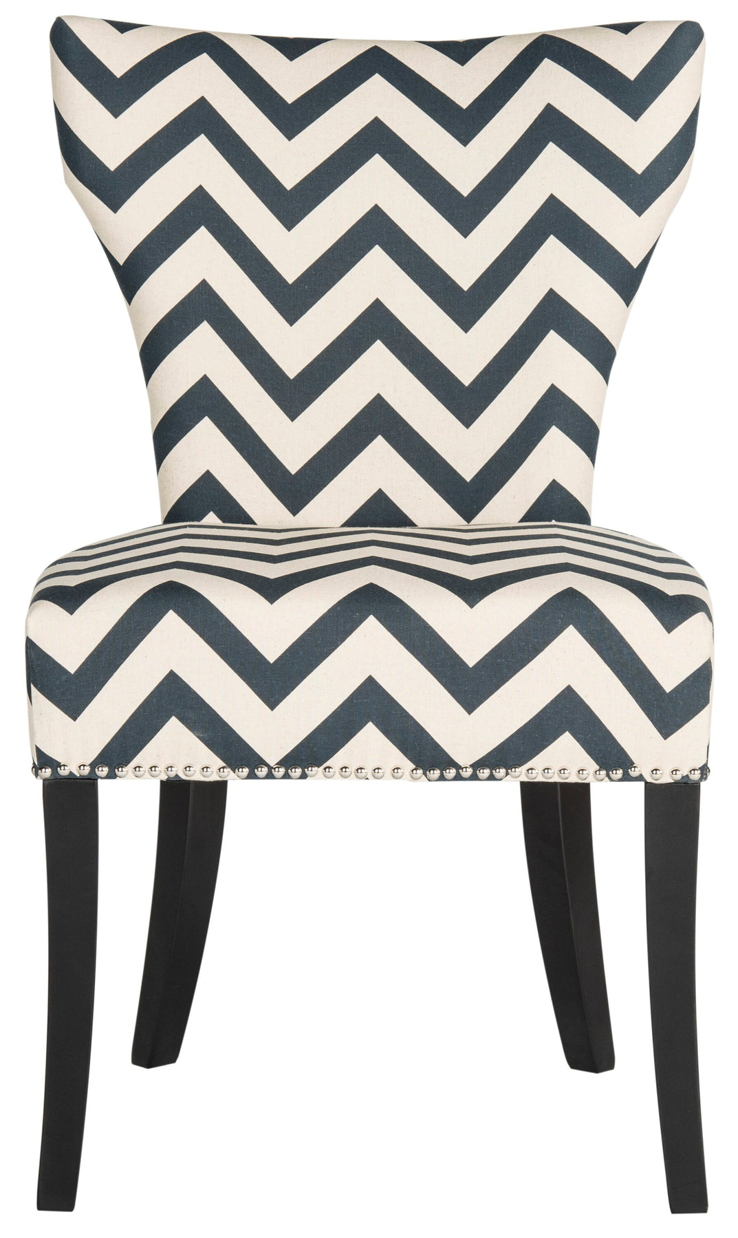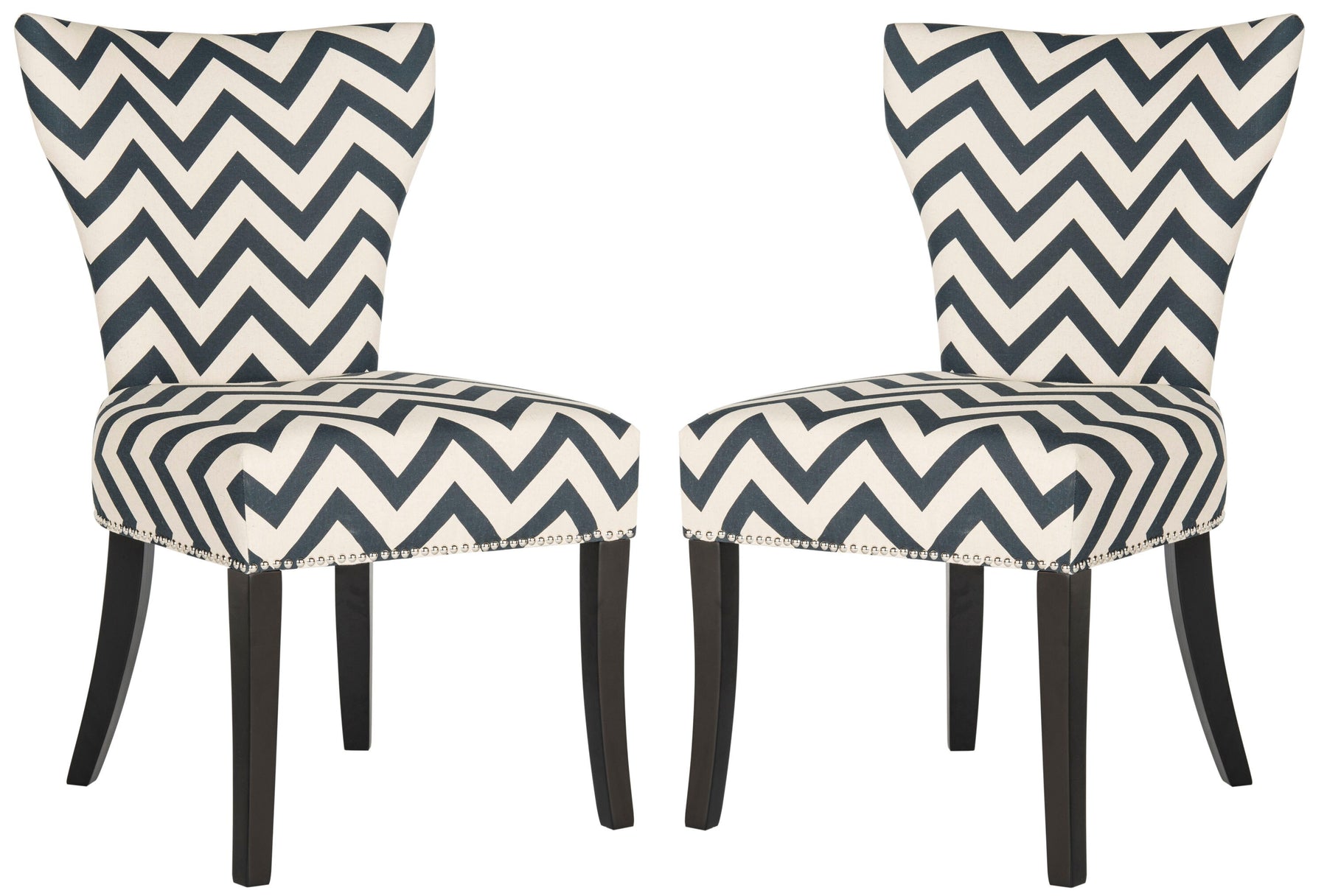 Safavieh Jappic Set of 2 Contemporary Cotton-Linen Upholstered Side Chairs, Navy/White Chevron, Wood Frame (22.4 in W x 24.4 in D x 36.8 in H)