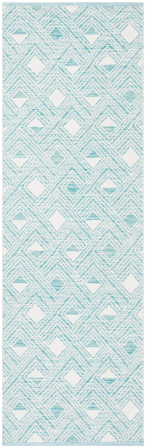 Safavieh Montauk Elmore 2-ft-3-in x 7-ft Aqua/Ivory Indoor Geometric Coastal Handcrafted Runner Rug
