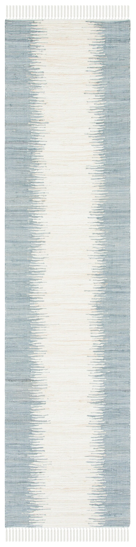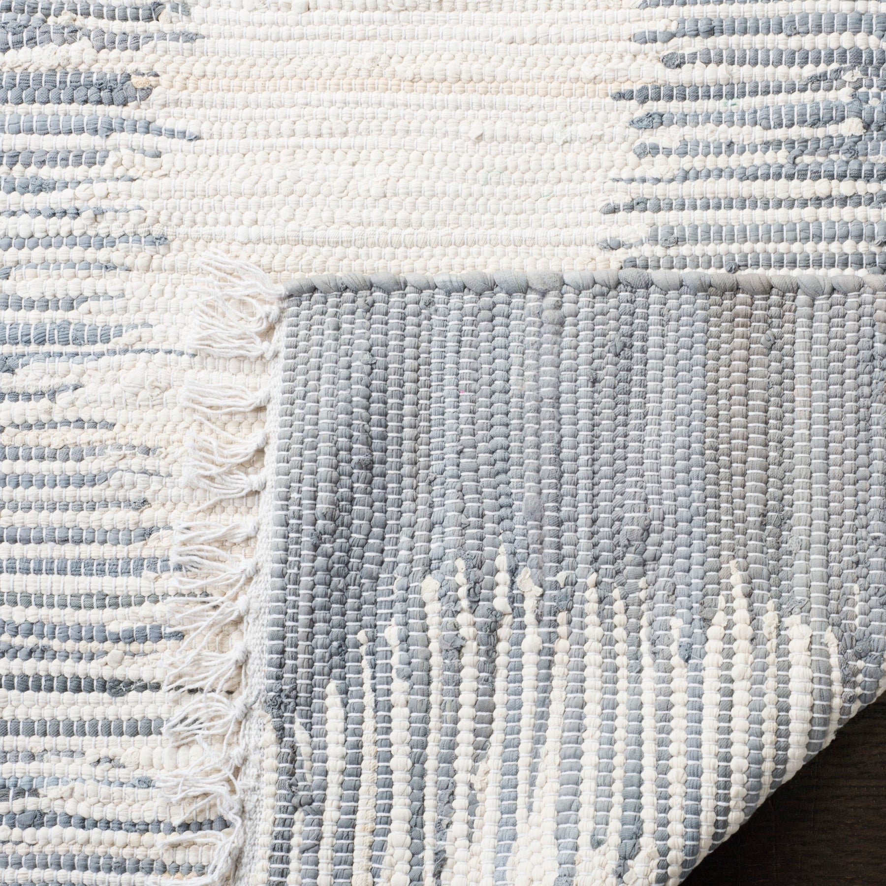 A breezy coastal runner crafted from 100% cotton in a flat-weave, handwoven construction. Its gray-and-ivory stripe pattern adds airy texture to hallways and entryways while the thin profile suits low-clearance doors.