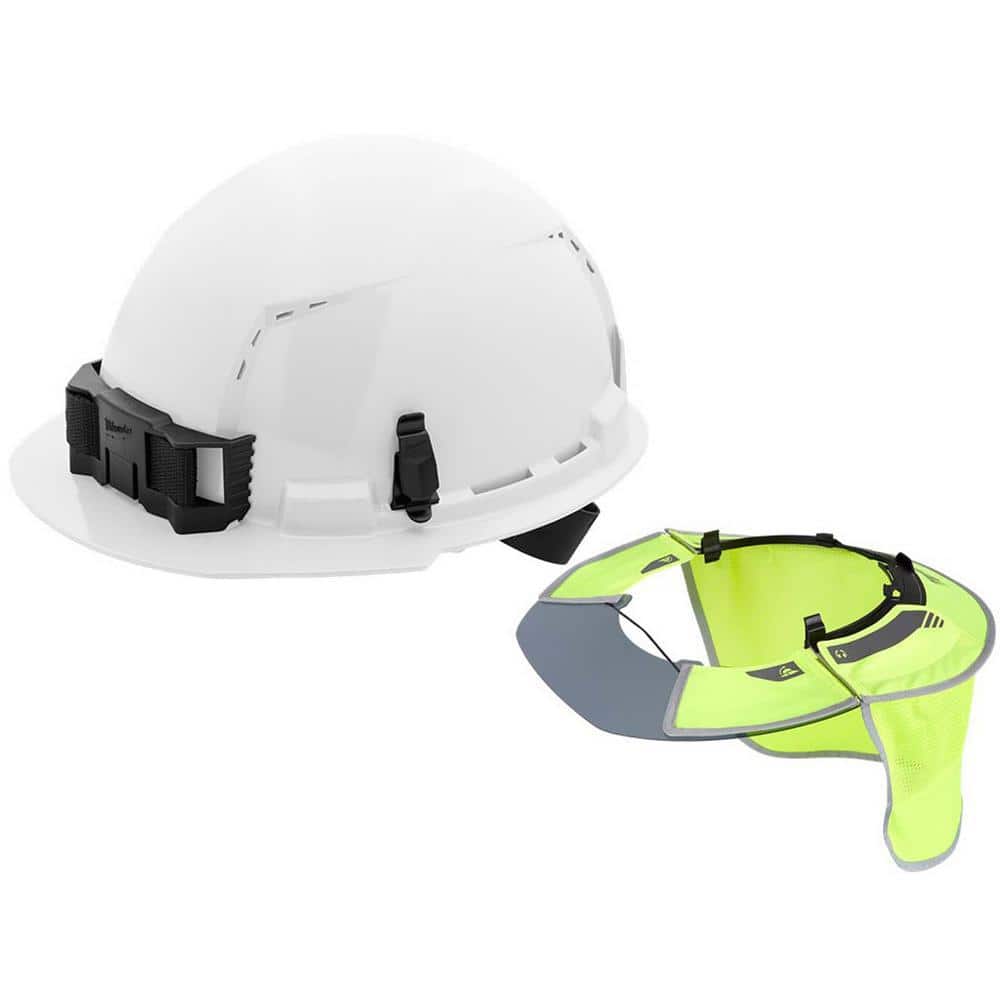Milwaukee BOLT White Type 1 Class C Front Brim Vented Hard Hat with 4-Point Ratcheting Suspension and High-Visibility Mesh Sunshade