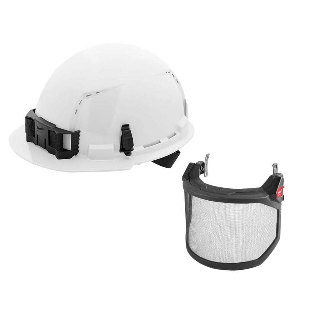Milwaukee BOLT White Type 1 Class C Front Brim Vented Hard Hat with 4-Point Ratcheting Suspension and BOLT Mesh Full Faceshield