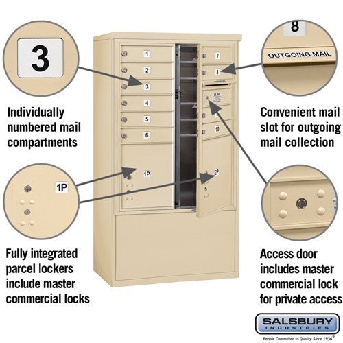 10 Door High Free-Standing 4C Horizontal Mailbox with Parcel Lockers in Sandstone