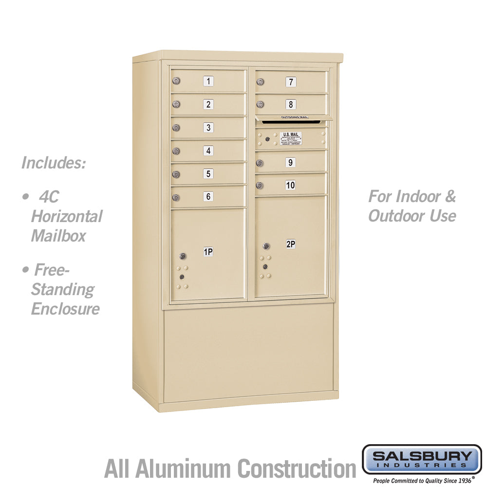 10 Door High Free-Standing 4C Horizontal Mailbox with Parcel Lockers in Sandstone