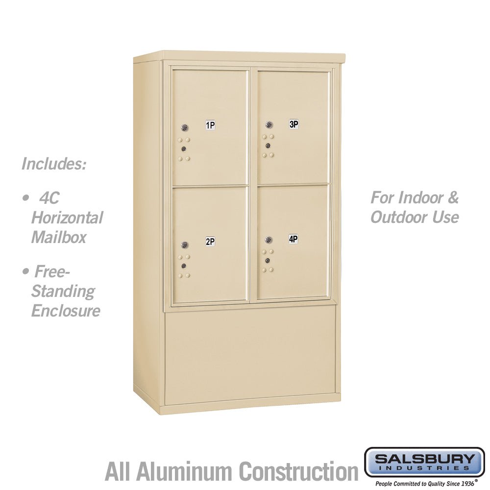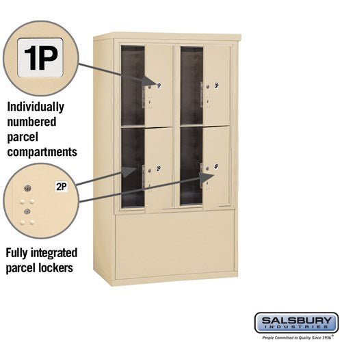 10 Door High Free-Standing 4C Horizontal Parcel Locker with 4 Parcel Lockers in Sandstone with USPS Access